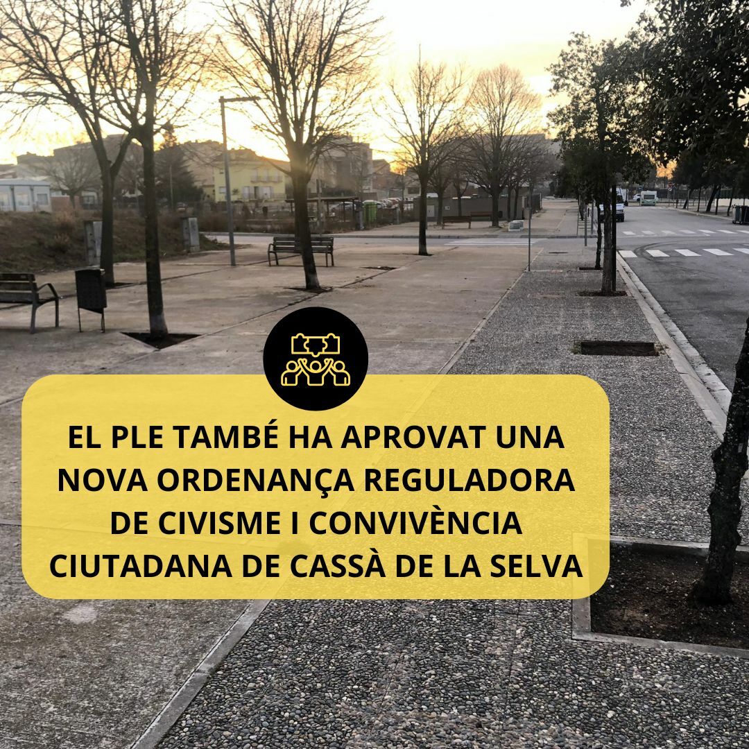 El ple també ha aprovat una nova ordenança reguladora de civisme i convivència ciutadana de Cassà de la Selva, que substitueix l’anterior ordenança vigent que datava de 1996.
