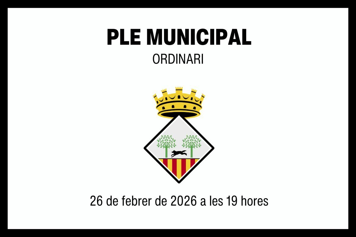 Demà dijous 26 de febrer de 2026, tindrà lloc la celebració del Ple municipal ordinari a les 19 h.