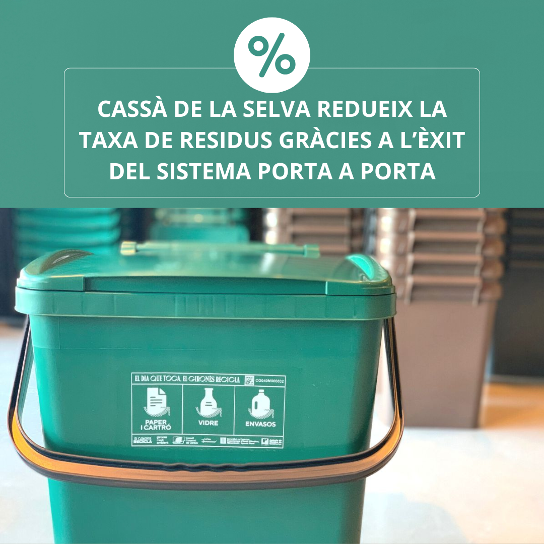 “Aquesta reducció és una manera de retornar a la ciutadania l’esforç i la responsabilitat que han demostrat amb el nou sistema. Els bons resultats ens animen a continuar millorant i treballant per fer de Cassà un municipi més sostenible, net i endreçat”, ha destacat l’alcalde Pau Presas i Bertran.